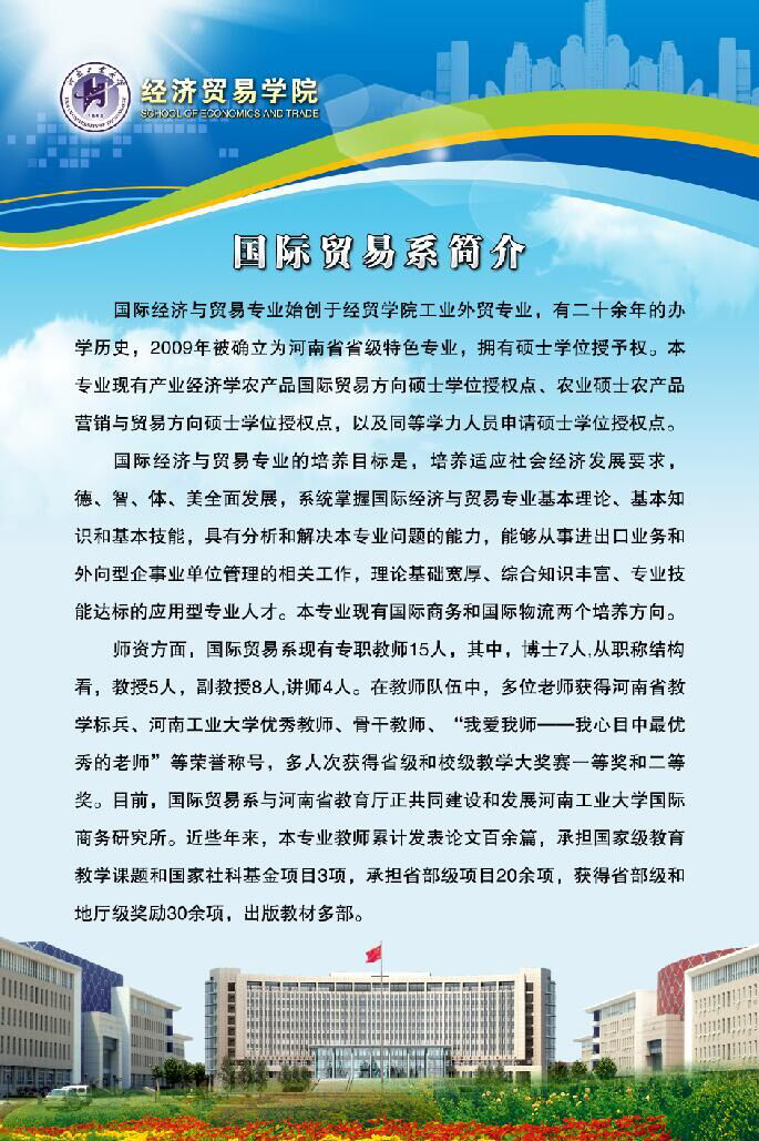 2、国际经济与贸易专业(四年制本科;文理兼收)