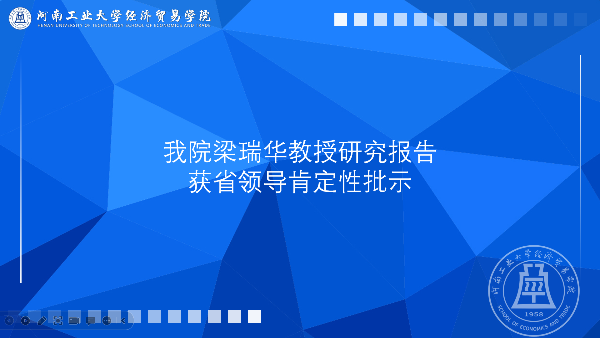 梁瑞华教授撰写的研究报告《河南省现代信息技术与农业经济深度融合研究》,获得河南省人大常委会副主任乔新江的肯定性批示,认为该报告具有参考价值,请省人大农委、省乡村振兴局、省农业农村厅吸纳研究。