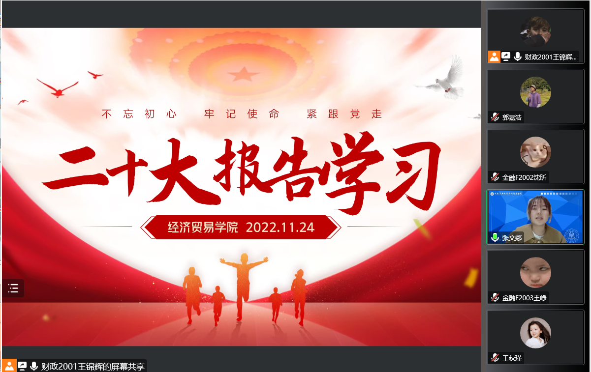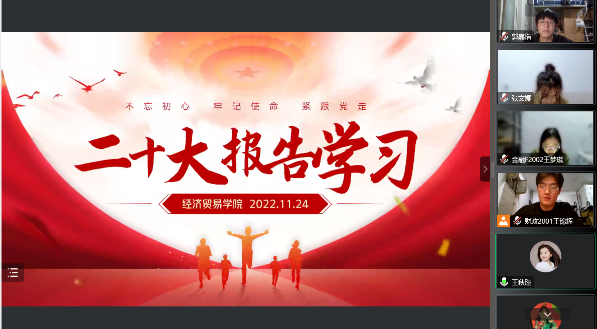 通过腾讯会议召开了“不忘初心,牢记使命,紧跟党走”二十大精神专题学习会,院团委副书记王秋瑾和学院全体学生会干部参加了会议。会议由院学生会团委副书记王锦辉同学主持。