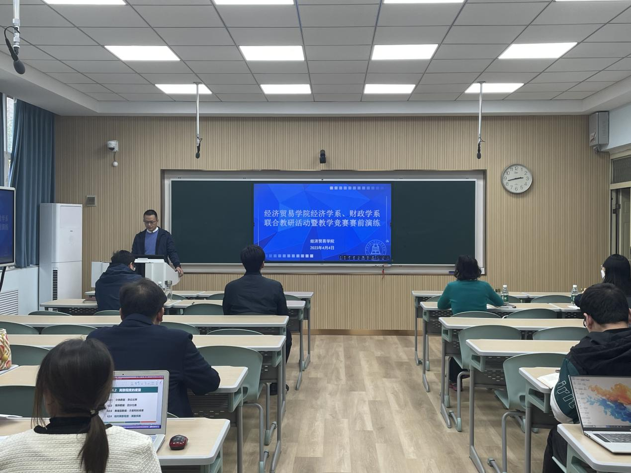 组织经济学系、财政学系在3330智慧教室开展联合教研活动暨教学竞赛赛前演练,由管理学院秦海敏教授、学校教学督导戴晓鹂、学院教学督导吴成浩组成评审小组,学院部分青年教师观摩了比赛。活动由副院长朱坤林主持。