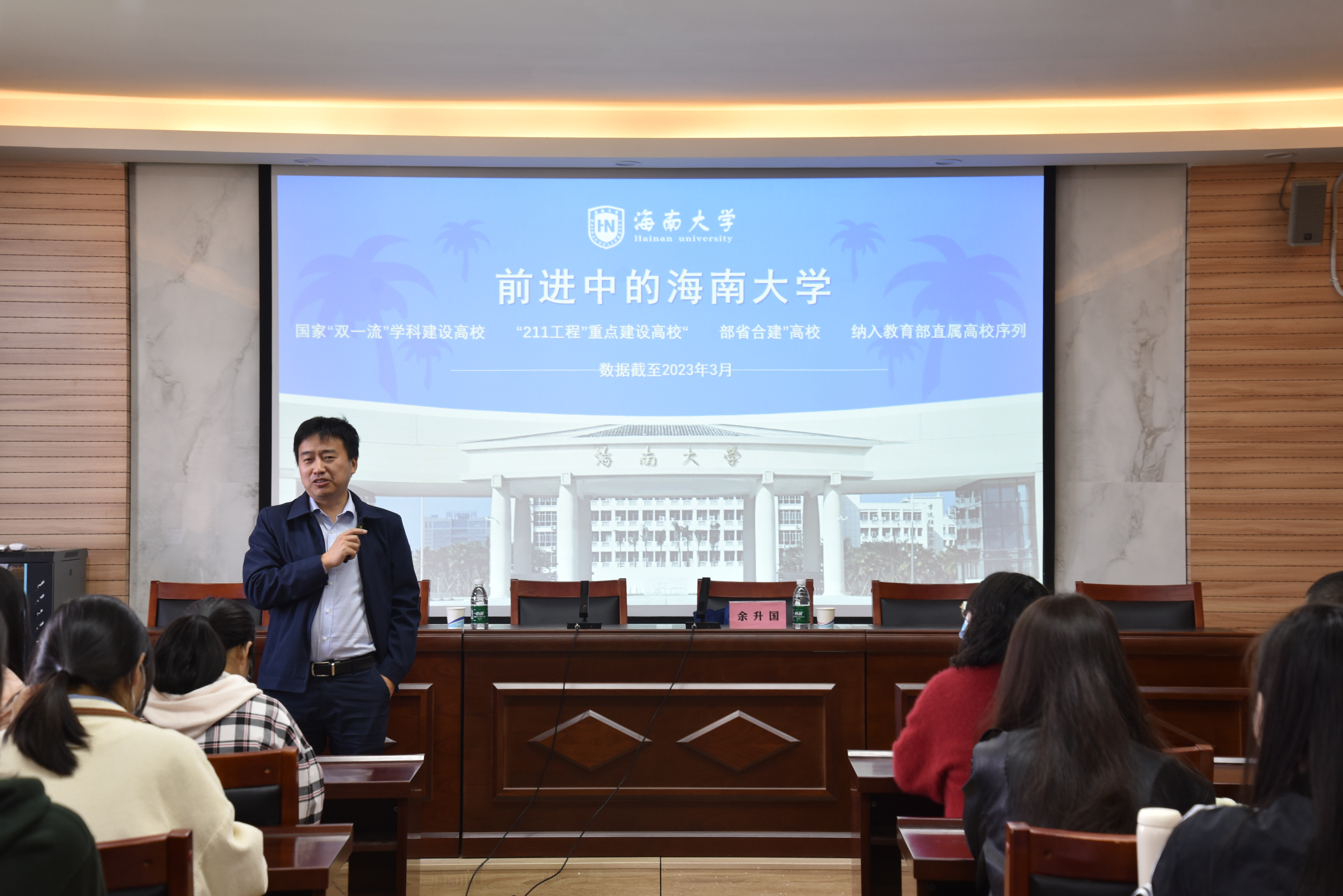 宣讲会上,岳鹏珍代表学院对余升国副院长的到来表示热烈的欢迎,并介绍了学校概况和学院基本情况、特色专业、2020级本科生整体情况及近几年学生报考海南大学情况。余升国围绕海南大学总体情况、海南自由贸易港优势特征、经济学院及学科简介和经济学专题科目答题技巧等多个方面进行详细介绍,同学们专注听讲,积极与老师互动。最后,岳鹏珍做总结讲话。她希望同学们结合本次宣讲会的内容,坚定考研信念,理清考研思路,积极应考,也希望未来双方院校能进一步交流与合作。