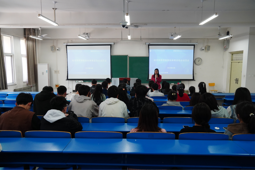 2023年阳光运动会动员大会在3209教室顺利召开。院党委副书记岳鹏珍、团委负责人王秋瑾及参赛运动员参加了会议,会议由王秋瑾主持。