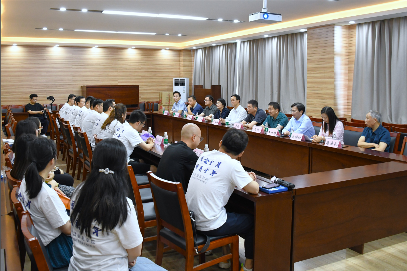 举办2013届校友“毕业十周年”返校活动。上午9点在3605会议室举行校友座谈会,校党委宣传部部长黄泽峰、校招生办主任王迪、校友办副主任赵强、院党委书记李刚、院长孙中叶及副院长朱坤林、汪来喜等领导及部分教师参加。座谈会由学院党委副书记岳鹏珍主持。