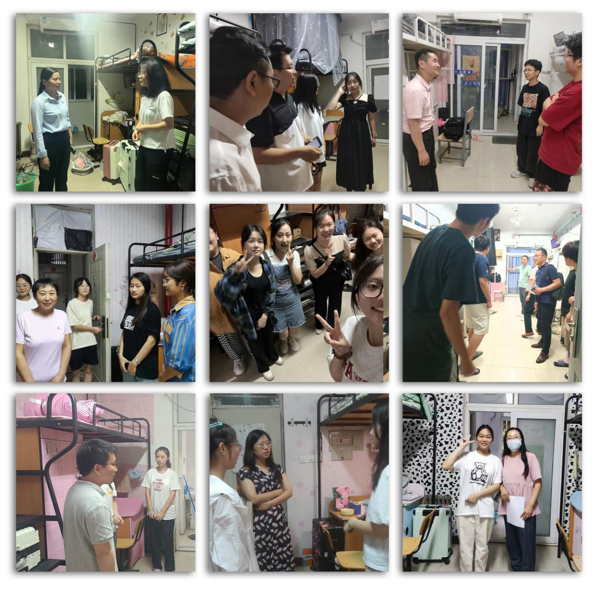 当天晚上,岳鹏珍带领全体辅导员和2022级班主任深入搬迁学生宿舍进行走访慰问。老师们详细询问了同学的搬迁感受、困难困惑,并及时给予帮助解答;提醒大家注意安全问题,特别强调要科学规范用电,做好防火防盗工作;叮嘱同学们遇到困难与辅导员、班主任及时沟通联系;鼓励大家树立学习目标,做好未来几年的学业规划。