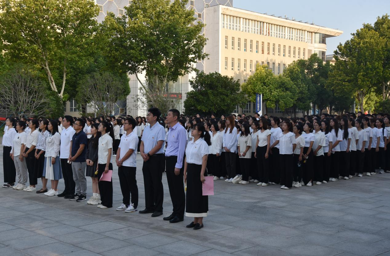 于9月18日在莲花街校区隆重举行升国旗仪式。学院党委书记李刚、党委副书记岳鹏珍、学工办主任李振宇、全体辅导员和2022级全体学生参加了升旗仪式。仪式由院团委副书记王秋瑾主持。