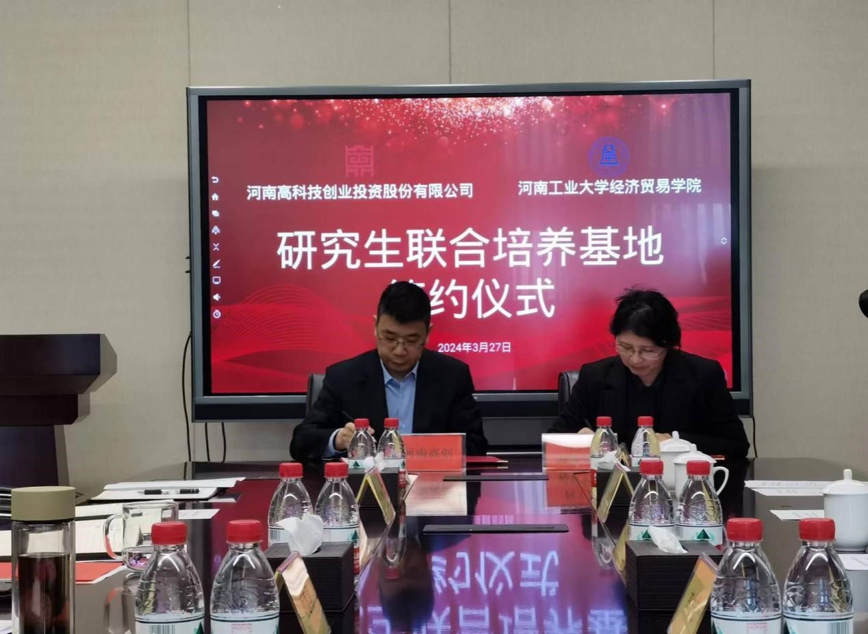 河南农投科创投资有限公司党委副书记、总经理李贞和介绍了农投科创投资有限公司的基本情况、发展历程和重点投资方向等。农投科创纪委书记胡德勇围绕校企合作联合人才培养、搭建高质量就业平台等方面提出建议,期望双方在硕士毕业生实习、专业实践等方面加强合作。农投科创副总经理倪政委做“立足本土、服务科创、助推成长”的报告分享,公司通过“直接投资+基金管理+专业服务”等方式更好地服务当地社会经济发展。最后,双方在研究生创新基地协议书上签字,并举行授牌仪式。