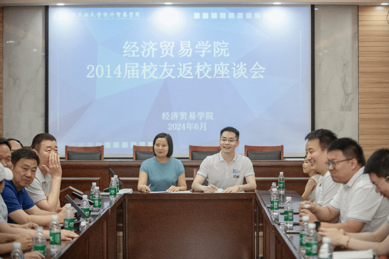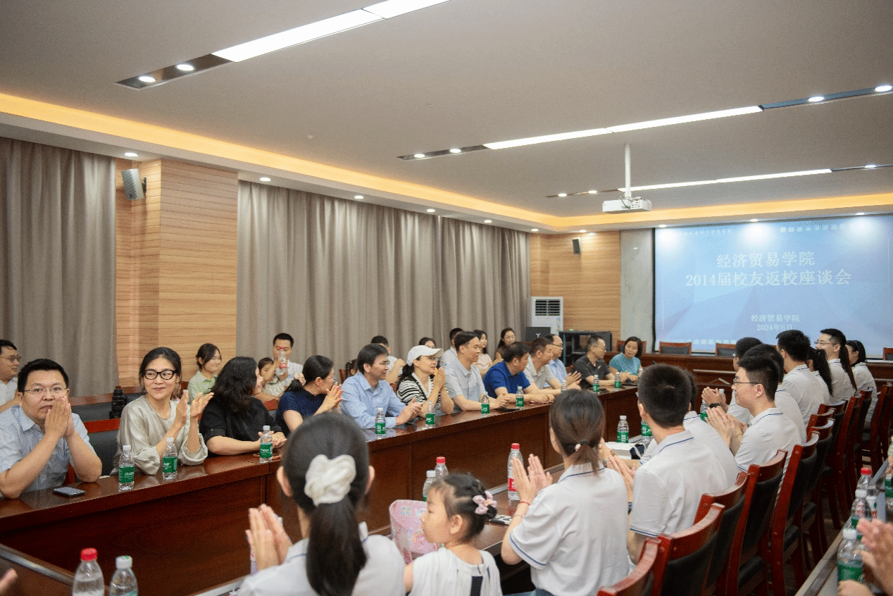 2014届校友开展返校活动,上午在3605会议室举行校友座谈会,经贸学子欢聚一堂,重温青春岁月,共话母校情深,畅谈学校新面貌、新发展。校党委副书记黄泽峰、校友工作与教育发展基金会办公室副主任赵强、原学工办主任余明老师、时任辅导员包晖老师、学院领导、教师代表、校友代表参加此次座谈会。座谈会由院党委副书记岳鹏珍主持。