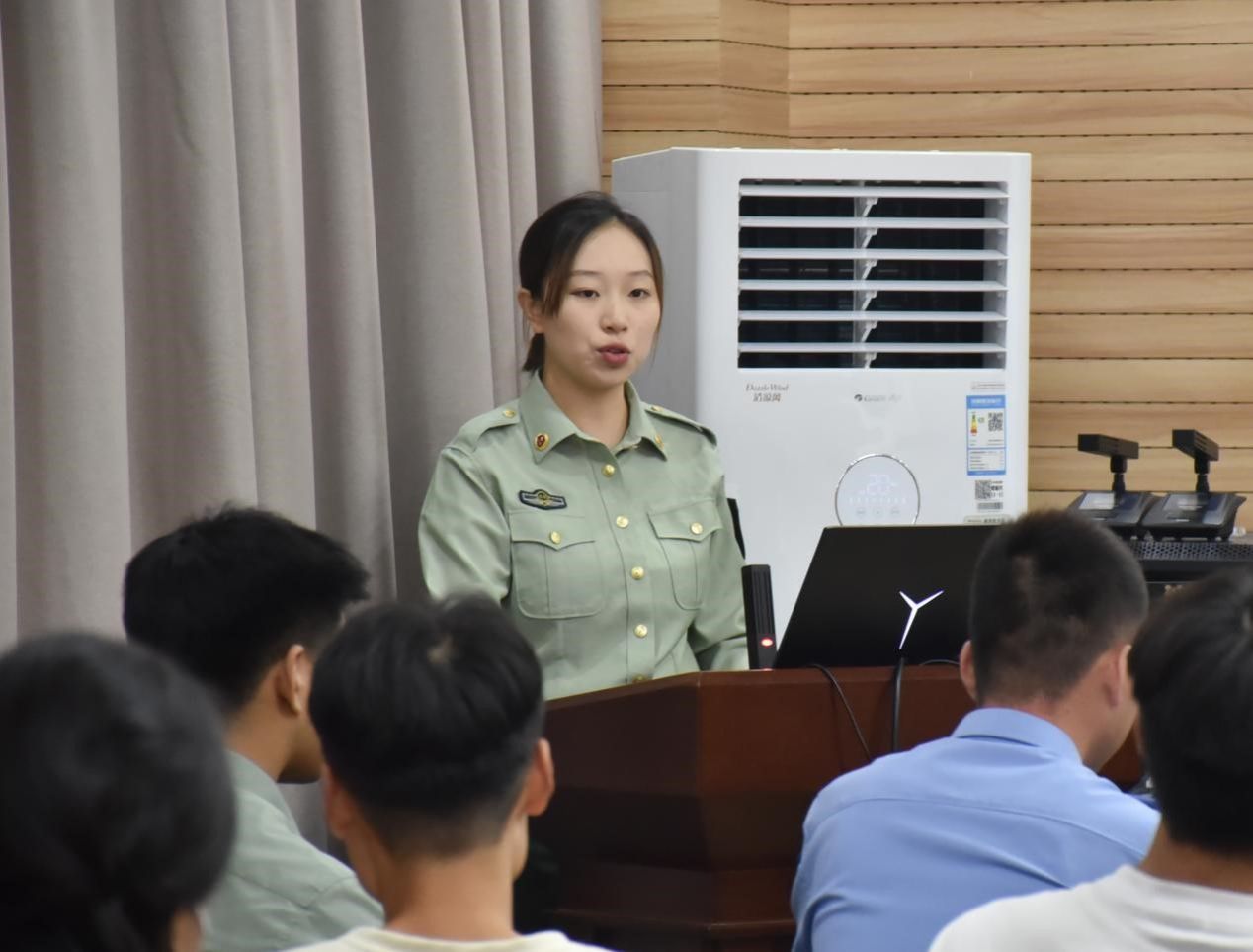 学院邀请退伍学生于欣路、王越胜、巩旺龙分享经验,帮助同学们了解军旅生活。他们结合自身丰富的经历,分享了参军入伍对个人成长、家庭荣誉、社会贡献等方面的积极影响,让同学们深刻感受到了参军入伍的崇高使命和光荣责任。退伍学生王斐帆则为学生们详细解读了国家征兵政策,以生动的语言、详实的数据,深入浅出地介绍了参军入伍的条件、流程以及优惠政策等,让同学们对征兵政策有了更加全面、深入的了解。