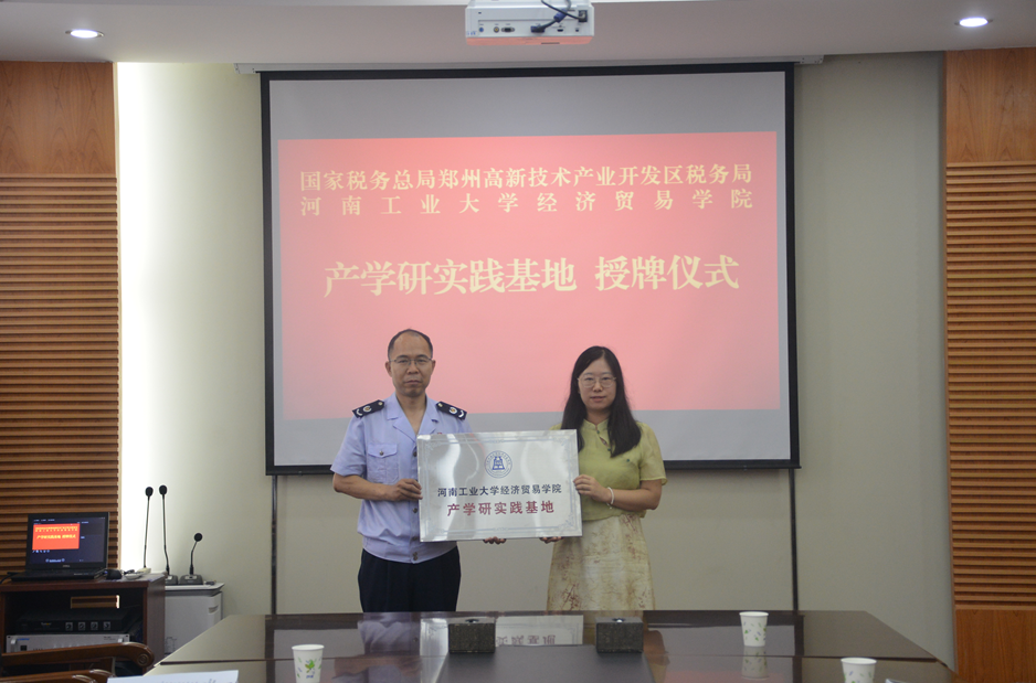 与国家税务总局郑州高新技术产业开发区税务局(以下简称高新区税务局)在高新区税务局金梭路办公区举行产学研实践基地授牌仪式暨实习生见面会。高新区税务局副局长于德亮、组织人事股科长高新平,91吃瓜