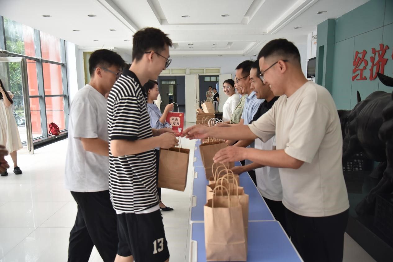 活动中,学院领导与学生们进行亲切地交谈,一方面叮嘱同学们感恩父母、勤奋学习,在佳节之际通过各种方式向家人表达思念与感恩之情;另一方面强调了个人假期出行安全的重要性,提醒同学们做好安全防范措施。随后,学院领导和老师们为在场每一位学生亲手送上学院精心准备的月饼水果礼包。慰问现场秩序井然,气氛温馨而热烈,学生们手提着满载祝福的礼包,脸上洋溢着幸福的笑容,纷纷对学院的关心表达了诚挚的感谢。