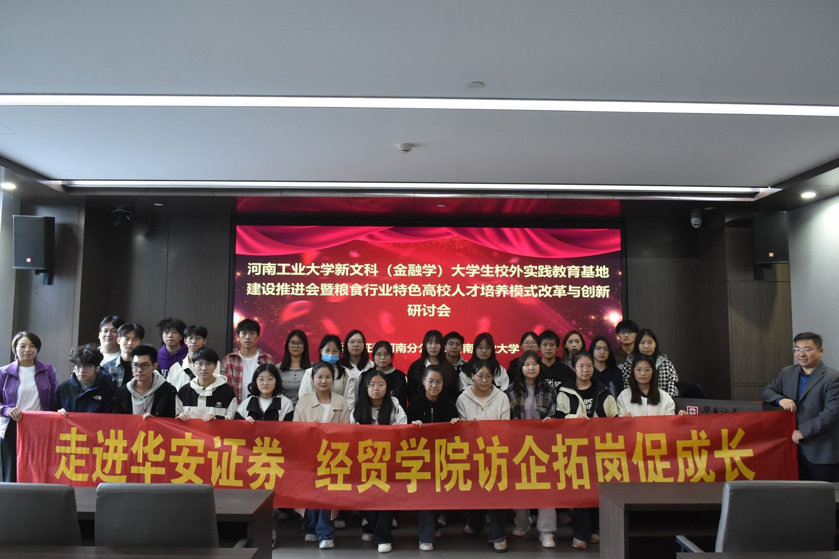 组织2023级金融创新实验班学生前往华安证券河南分公司开展了一场访企拓岗和专创融合育人活动。