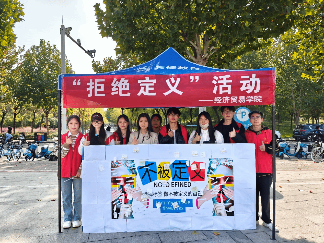 活动现场气氛热烈,吸引了众多同学参与。通过设置专门的展板,上面贴满了各种带有负面定义和标签的纸条,如“胆小鬼”“失败者”等,同学们积极上前撕下这些标签,表达对被不合理定义的反抗,并写上自己想说的话。这一过程不仅让参与者有了情感的宣泄,更重要的是传递了拒绝被他人简单定义的理念,鼓励大家勇敢地拒绝被定义,追求真实、多元的自我。