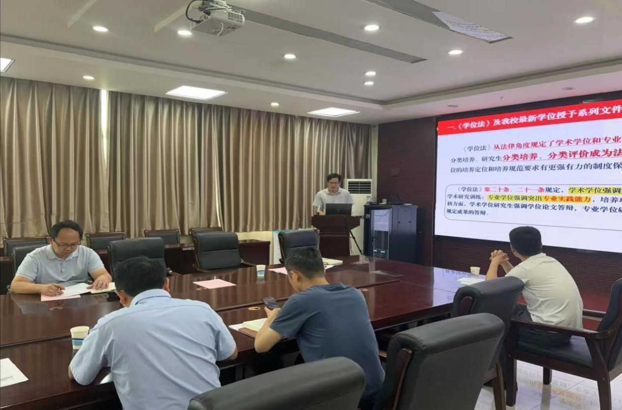 其次,程晓林院长解读了《学位法》,强调分类培养,学校修订四项学位文件,如调整学位评定委员会章程、规范论文管理等。通报学位论文送审情况,指出选题偏离方向、论文质量等问题,要求导师和学院严格把关。会议聚焦“强化分类培养,提升研究生培养水平”。提出总体目标,包括落实立德树人、契合国家战略需求、提升研究生比例等,并提出加大创新人才培养力度等重要举措。