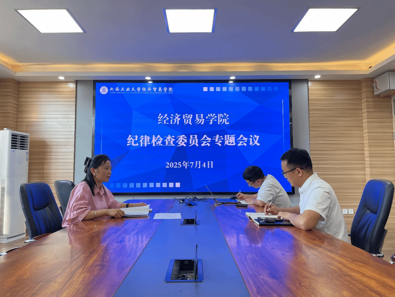 纪律检查委员会在博识楼3503会议室召开专题学习会议,会议由学院纪委书记岳鹏珍主持,纪委委员何宇鹏和张福勇参会学习。