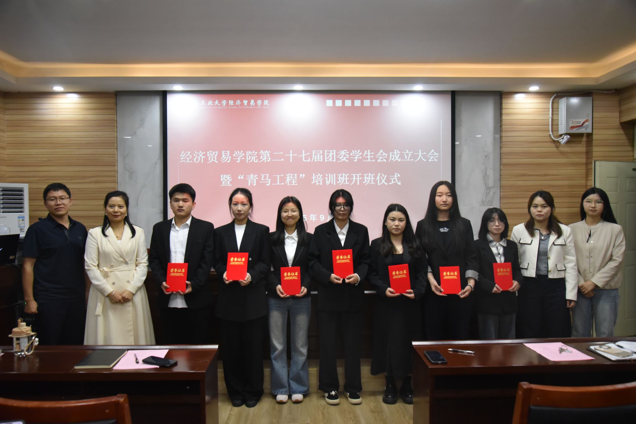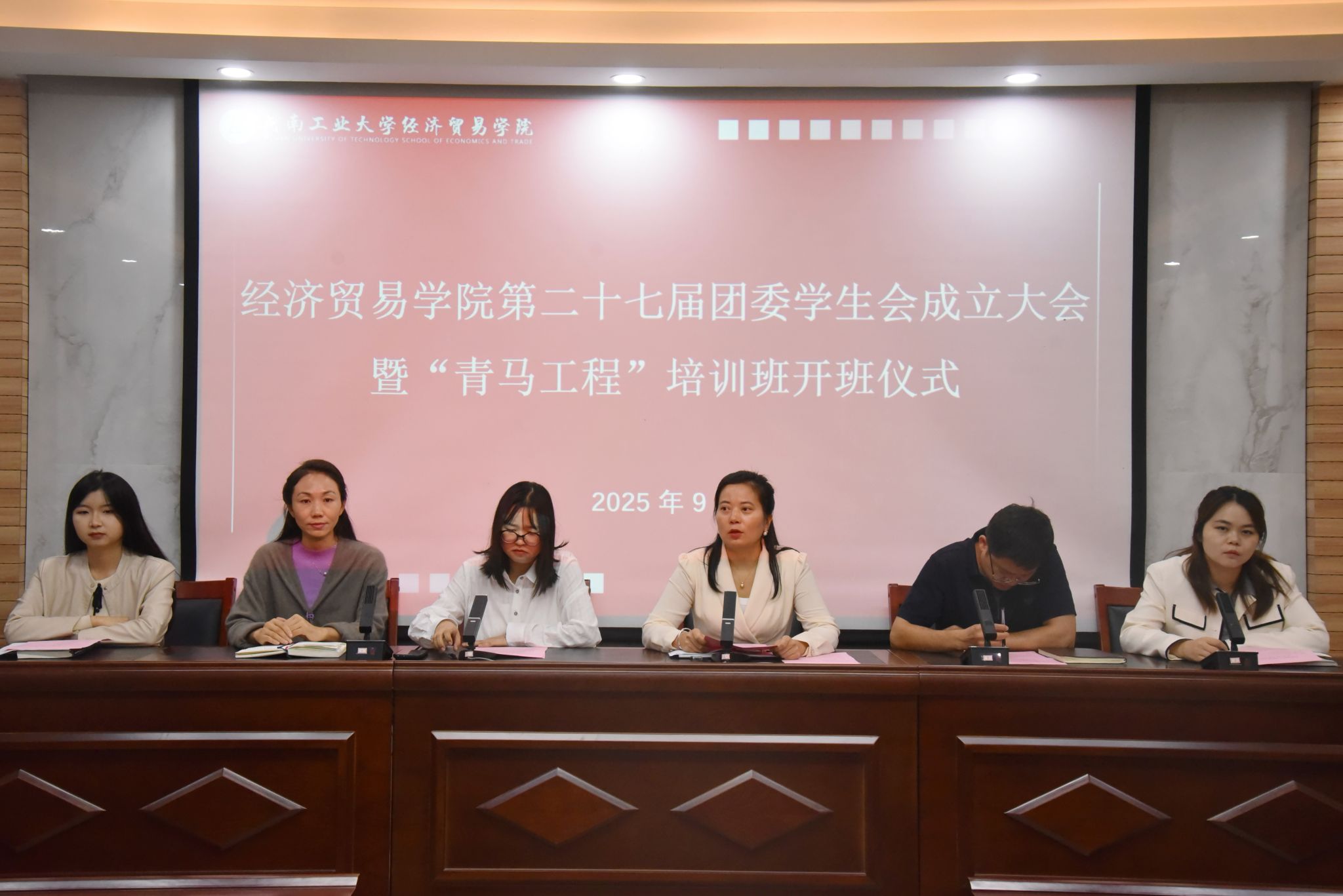 第二十七届团委学生会成立大会暨“青马工程”培训班开班仪式在博识楼3605会议室举行。院党委副书记岳鹏珍、学工办主任张福勇、团委书记王秋瑾、全体辅导员以及第二十六、二十七届全体团委学生会部长参与此次大会,大会由王秋瑾主持。
