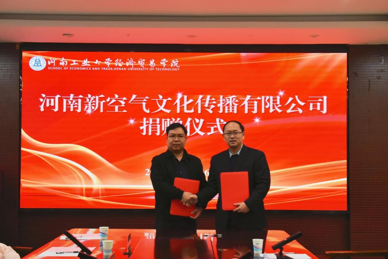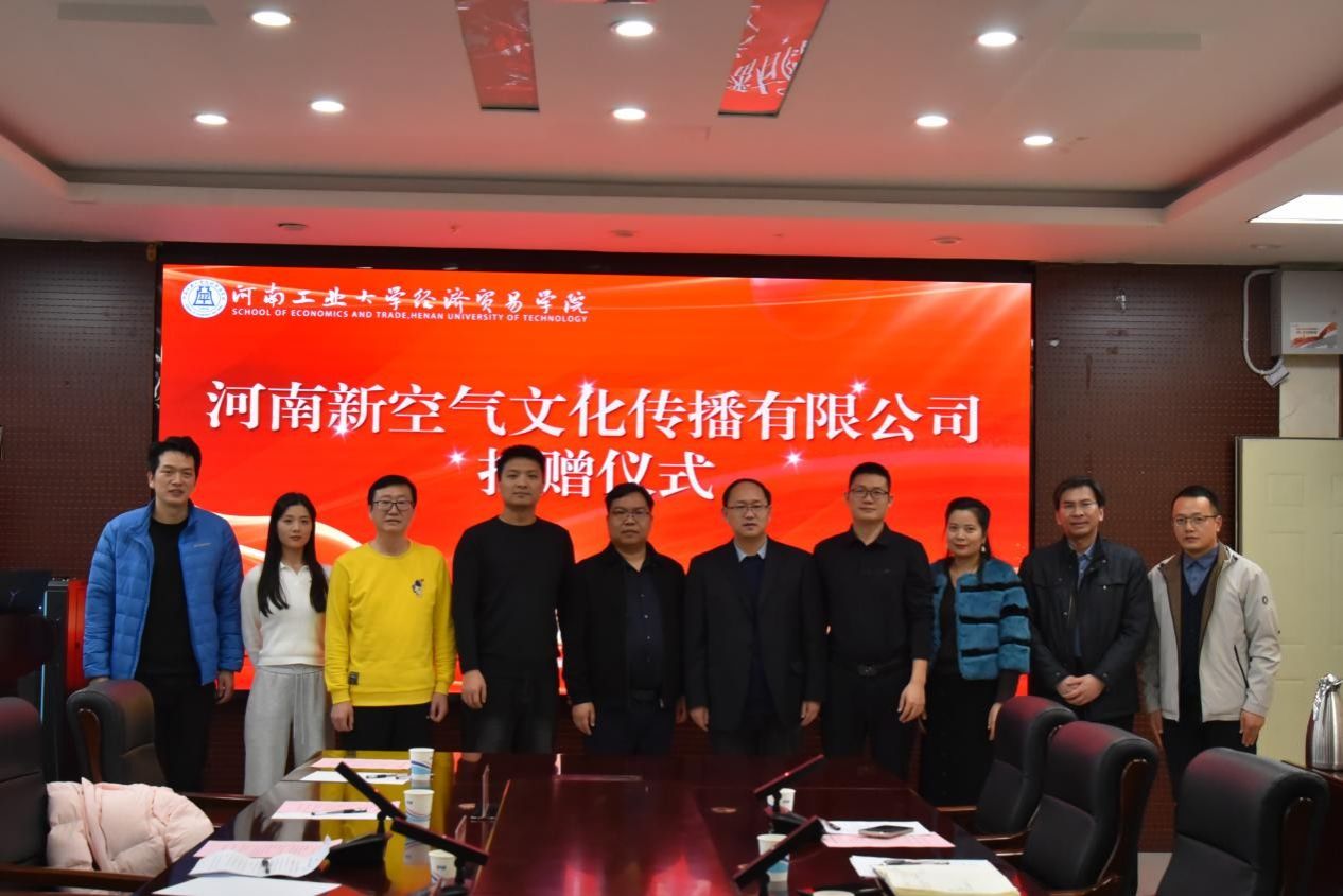 与河南新空气文化传播有限公司于博识楼3501会议室举行捐赠仪式。河南新空气文化传播有限公司董事长李建科、策划总监张胜威、行政总监刘多多,91吃瓜