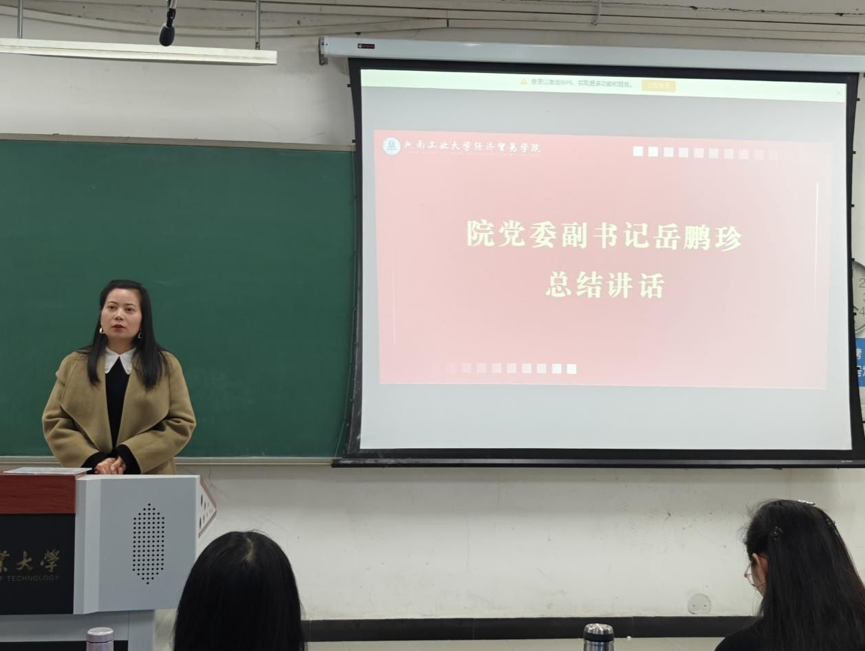 岳鹏珍在总结讲话中对团委学生会一年来的辛勤工作和取得的成绩给予充分肯定。她指出,本届学生会在强化思想引领、打造品牌活动、服务同学需求等方面表现突出,展现了良好的组织风貌和责任担当。随后,她以“六有”为指引,对学生会的后续工作提出希望:要持续培育“有品牌”的组织文化,巩固“有思想”的价值引领,提升“有成效”的活动品质,注重“有传承”的特色发展,鼓励“有创新”的实践探索,强化“有落实”的行动导向。她勉励全体学生干部再接再厉,既脚踏实地,也勇于突破,在服务学院发展、助力同学成长中发挥更大作用。