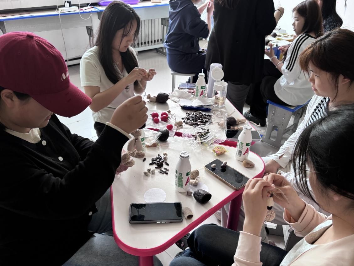 “果壳风铃制作”环节将自然元素与情绪疗愈有机融合。参与者通过钻孔、穿绳、组装等实践操作,于果壳之上书写烦恼与期许,亲手完成专属风铃的制作。风铃的轻盈鸣响,象征着压力随风消散、美好如期而至,同学们在沉浸式的创作过程中得以安放情绪、舒缓身心。