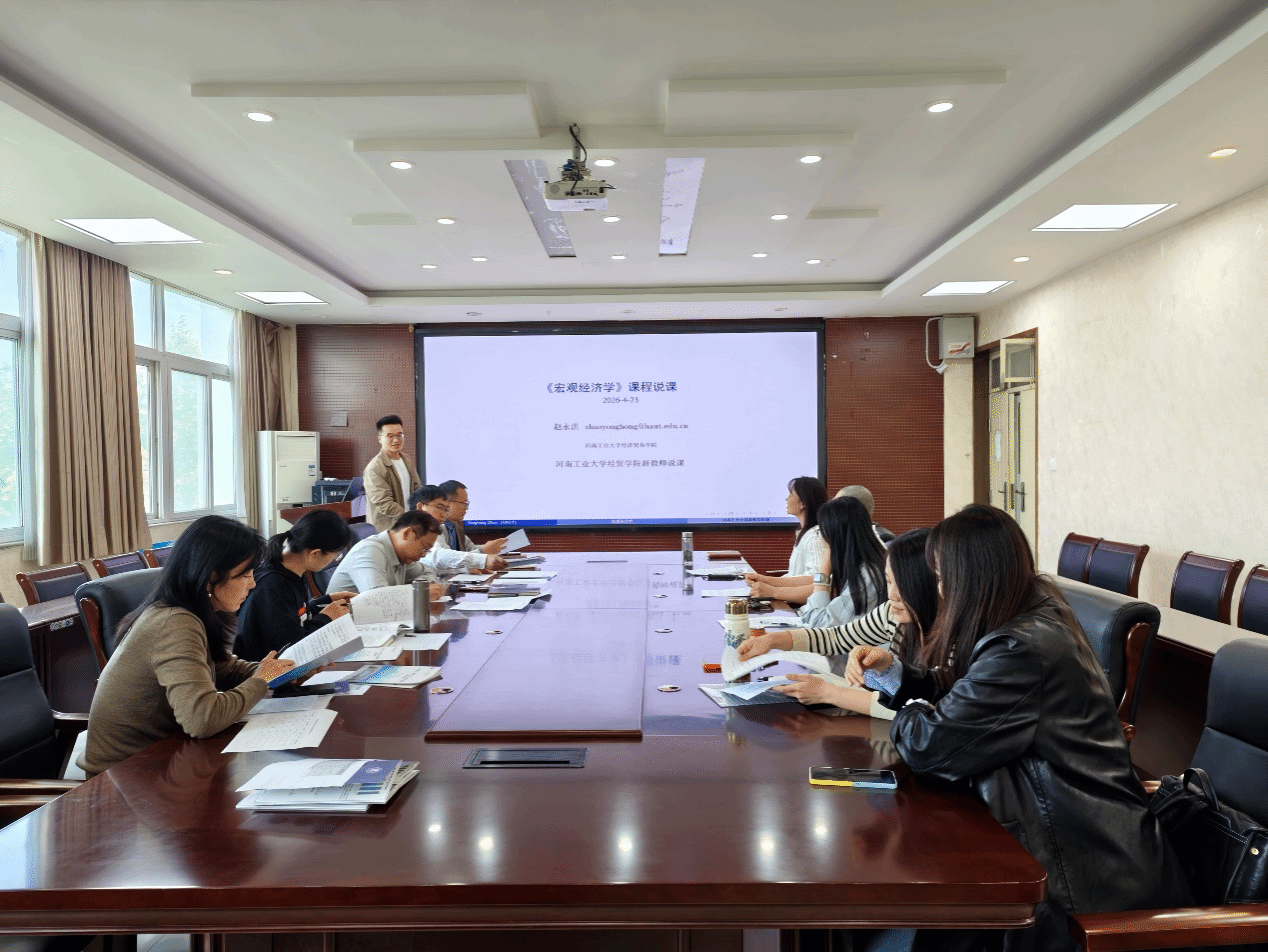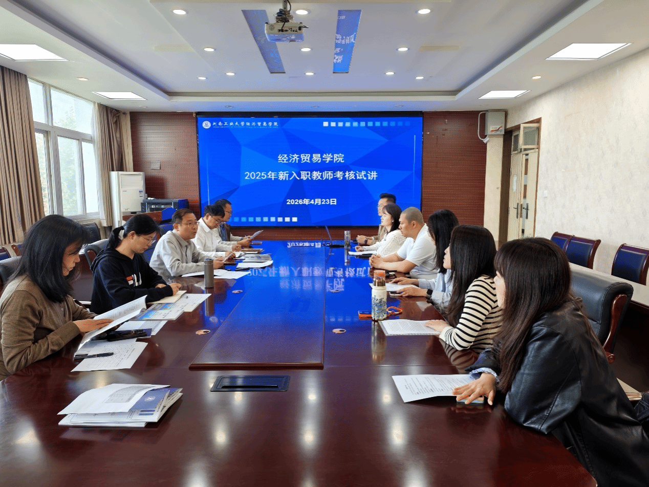 于4月23日下午在3501会议室开展2025年度新入职教师本科课堂教学准入考核工作。本次考核工作由副院长郭力主持,金融学系主任宋博、经济学系主任何宇鹏、财政学系主任潘美薇、国际经济与贸易系教师代表王殊等担任考核小组成员。