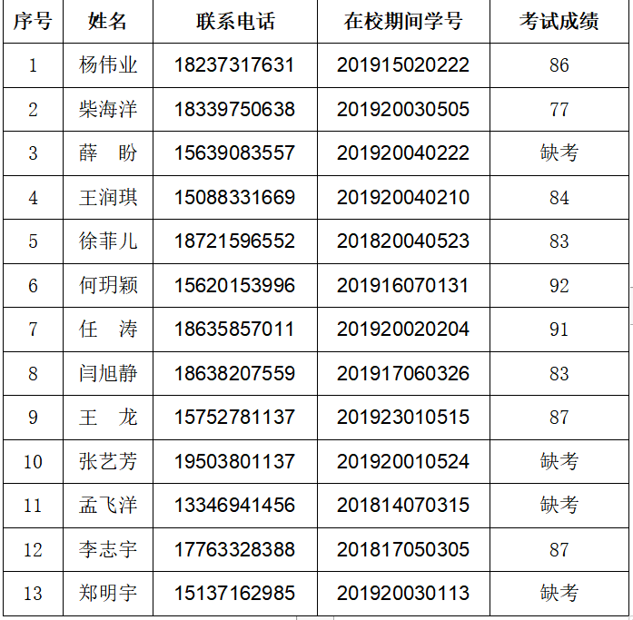 根据《教育部高等教育司关于做好2023年度第二学士学位教育工作的通知》《2023年河南省普通高校第二学士学位教育实施办法》《91吃瓜 2023年第二学士学位招生简章》相关要求,91吃瓜 制定《金融学专业第二学士学位招生考试方案》,并于2023年6月26日进行招生考试。现将考试成绩予以公示,公示期为2023年7月4日-7月6日。公示期内,如有异议,请于7月7日前以书面形式向教学办反映。