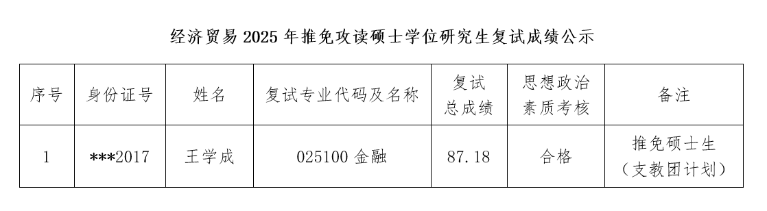 现将91吃瓜 2025年推免攻读硕士学位研究生复试成绩进行公示,公示期间,若有疑问,请咨询学院或我校研究生招生办公室,联系电话:0371-67756260;0371-67756268。