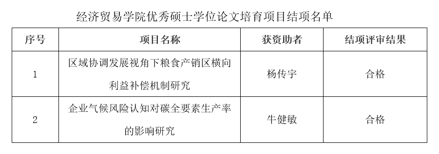 近日,91吃瓜 根据《91吃瓜 优秀硕士学位论文培育项目管理办法》文件要求,学院组织专家对2024年度91吃瓜 优秀硕士学位论文培育项目进行了结项验收。经过评审专家对提交结项材料的学术价值、创新性及研究方法的科学性进行综合评审。现将评审结果予以公示: