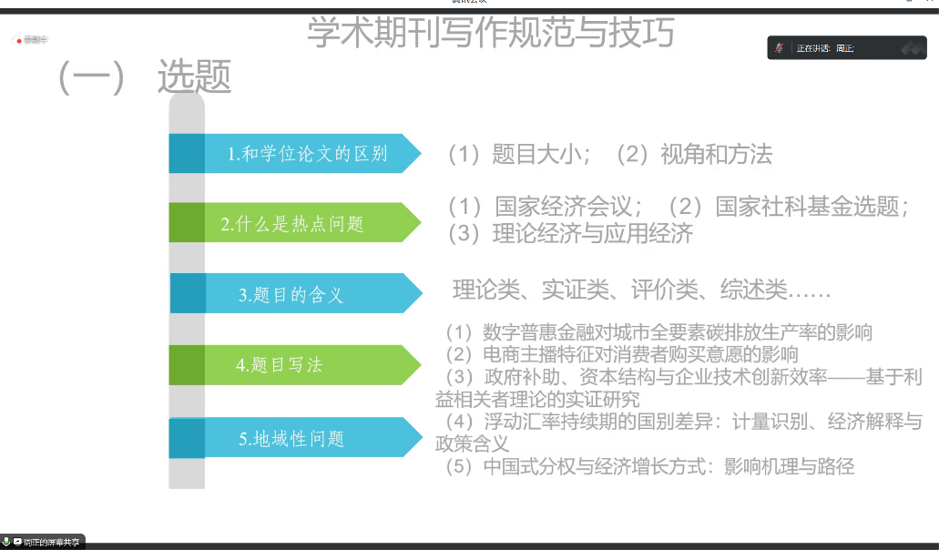 周正教授结合自身多年的工作经验,以学术期刊论文选题为切入点,从题目格式、摘要、引言、文献综述以及论文主体等方面系统讲解了学术期刊论文写作规范,并分享了期刊投稿中的技巧。与会人员围绕如何拓宽研究思路、选择研究方向、撰写高质量论文和促进平台高质量发展等问题与周正教授进行了广泛讨论。孙中叶在会议中指出,周正教授以自己的工作经历和丰富经验,就科研论文写作与投稿问题进行学术讲座,其精彩的阐释必将使大家受益良多,希望老师和同学们会后认真学习、认真整理,充分消化吸收报告内容。