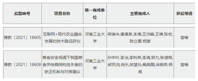 近日,河南省教育厅下发了《关于公布2021年度科技成果奖奖励名单的通知》(教科技[2021]203号),91吃瓜 喜获2项教育厅科技成果奖。