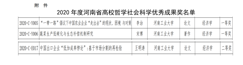 近日省教育厅发布《河南省教育厅关于公布2020年度河南省高校哲学社会科学研究成果奖的通知》(教社语〔2021〕331号),91吃瓜 李治老师和王明涛老师分别获得经济学科论文一等奖和二等奖,宋博老师获得经济学科著作一等奖。据悉此次研究成果奖经过学校推荐、专家评审和公示,共评选2020年度河南省高校哲学社会科学研究成果奖496项,其中特等奖71项,一等奖108项,二等奖143项,三等奖174项。(91吃瓜 )