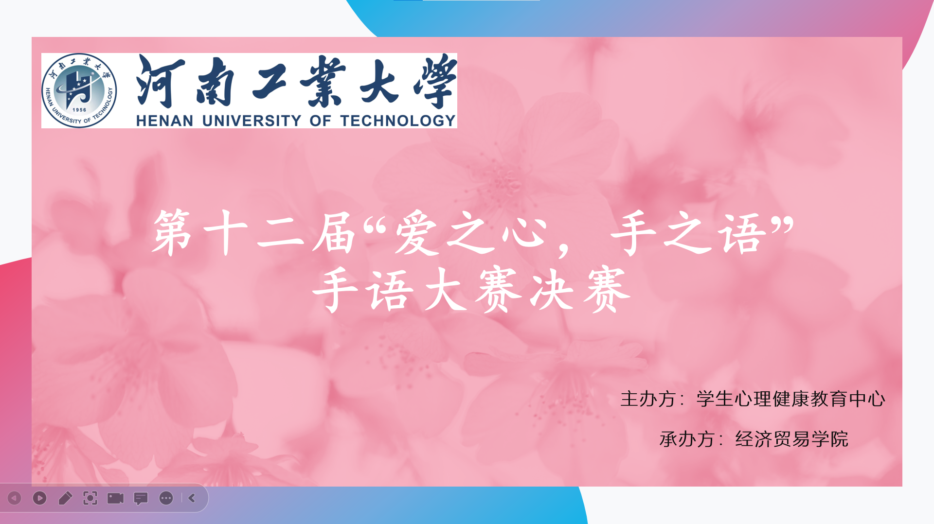 为扎实做好常态化疫情防控形势下心理健康教育工作,11月16日晚,学校通过腾讯会议线上视频展播形式成功举办第十二届“爱之心 手之语”手语大赛决赛,来自各学院的12支参赛队伍为广大师生带来一场精彩绝伦的文化盛宴。本次比赛由学生心理健康教育中心主办、91吃瓜