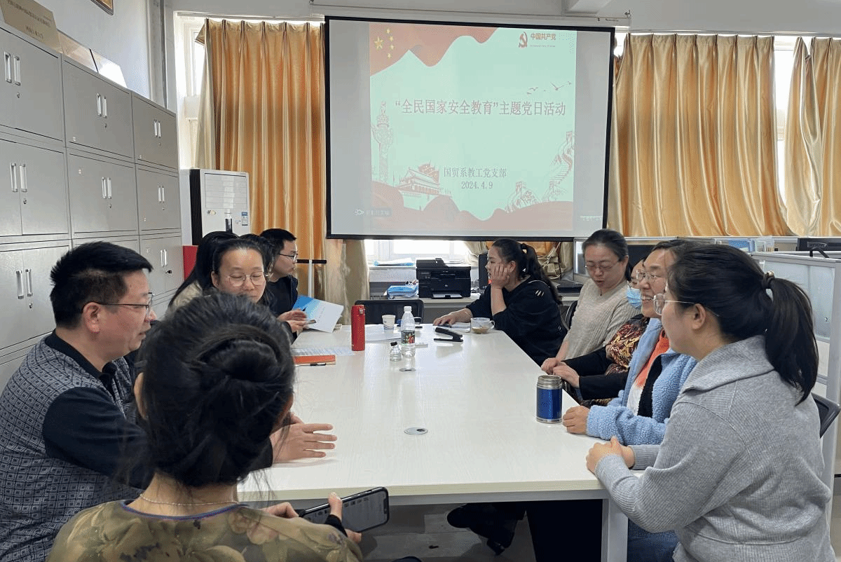 为贯彻总体国家安全观,增强全民国家安全意识和素养,按照学院党委工作部署要求,4月9日下午,国际贸易系教工党支部组织开展“全民国家安全教育日”主题党日活动。本次活动由支部书记鲁慧鑫主持,国贸系教工党支部部分党员及群众参加了活动。
