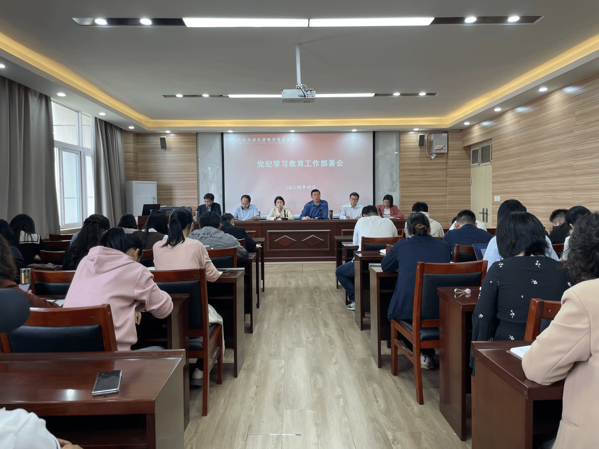 在博识楼3605会议室召开党纪学习教育动员部署会,深入学习贯彻习近平总书记关于党纪学习教育的重要讲话和重要指示精神,部署学院党纪学习教育工作。学院全体领导班子和教职工参加会议。院党委书记李刚主持会议并作动员讲话。