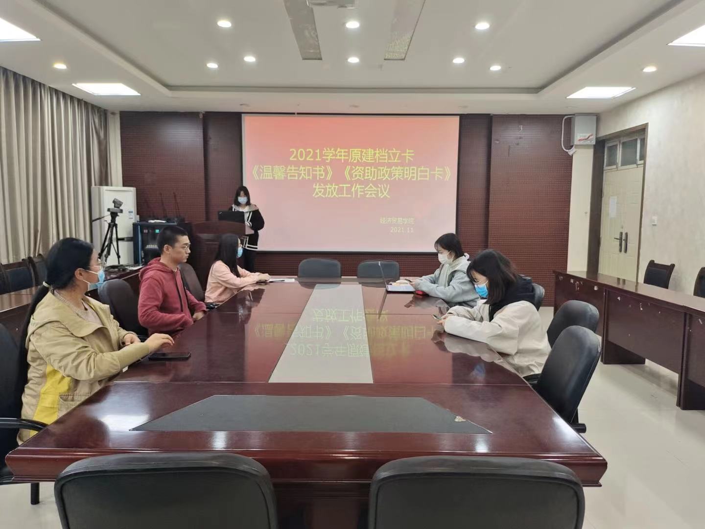 在3501会议室召开了原建档立卡“两张卡”发放的工作会议。学院资助工作负责老师王秋瑾、学院生活部成员及建档立卡全体学生参加了本次会议。