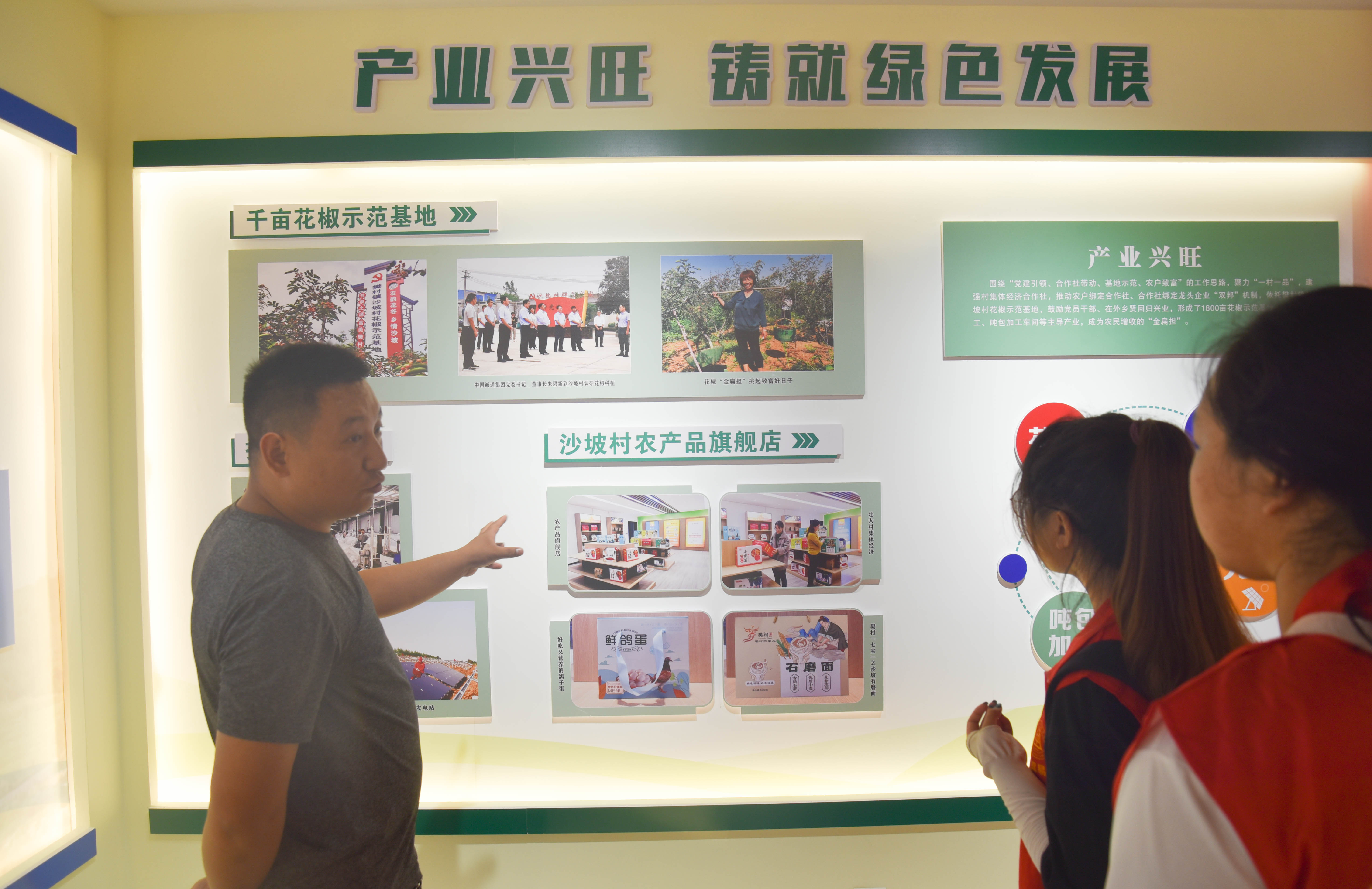 初入樊村镇沙坡村,团队成员就惊讶于该村的村容村貌。道路宽阔,屋舍齐整,避暑凉亭、棋牌室等休闲场所应有尽有,为丰富村民精神世界提供良好平台。在沙坡村书记的带领下,团队成员先后参观了当地的农家书屋、特色产品销售处等地,进一步了解了当地的设施建设情况。在与村书记的交流中,团队成员了解到,近年来樊村镇大力发展富民产业,通过企业引领、乡贤带动、群众参与,持续抓好果蔬、花椒、中草药、肉牛养殖等特色产业,以高效农业壮大集体经济,增加群众收入。同时,沙坡村还兴建了乡村振兴馆,馆内的村情、村史及道德模范、乡贤事迹等内容,不仅让村里的年轻人更多地了解历史,记住乡愁,还提高了村民的自豪感和投身乡村振兴的主动性。