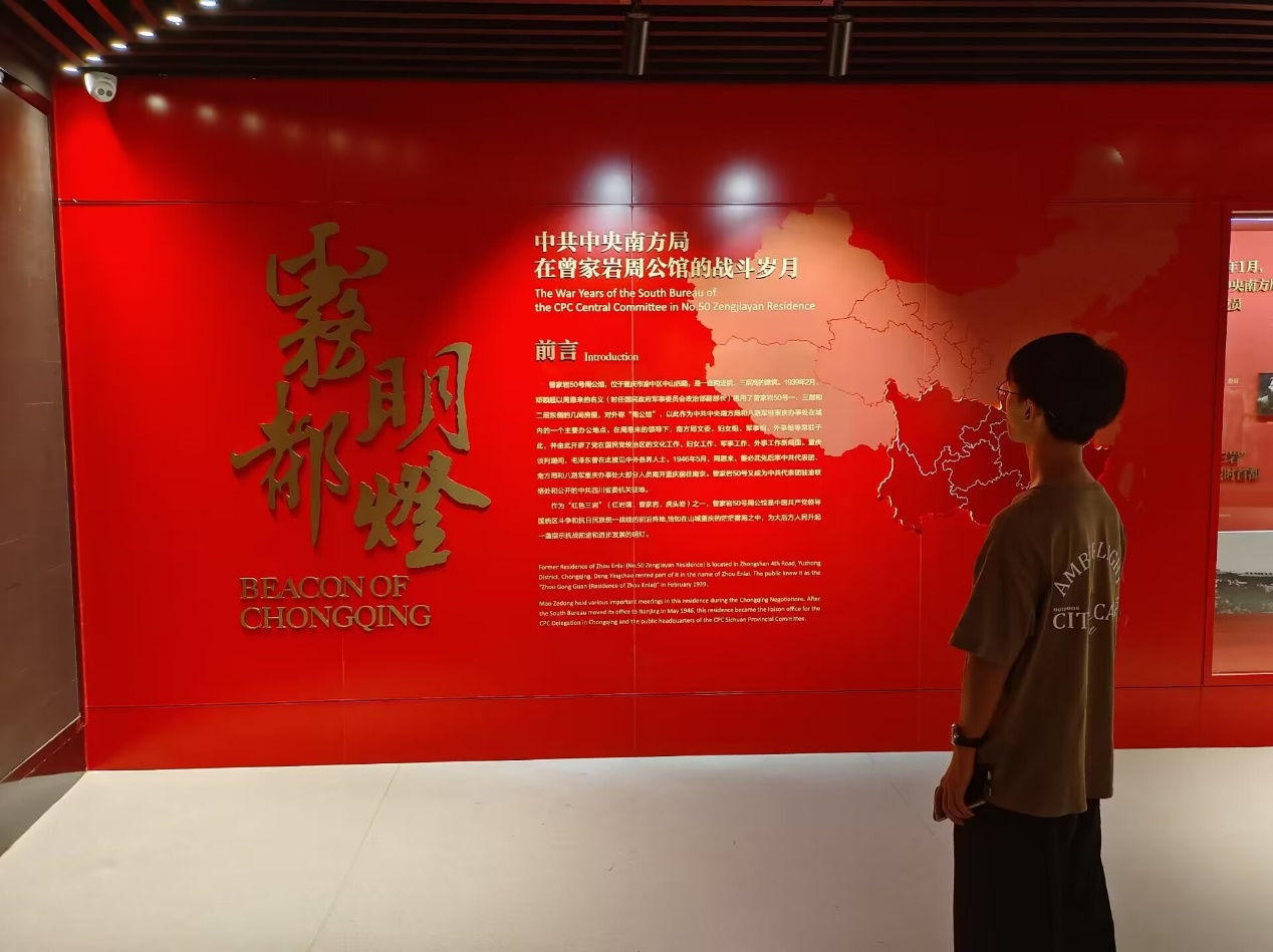 为了更好学习了解红色文化,7月21日,团队成员来到重庆周公馆纪念馆,作为中共南方局在重庆市内的一个主要办公地点,通过参观纪念馆旧址走入中国抗战历史,跟随历史的脚步回顾革命薪火,学习革命精神,了解红色文化故事。同时,团队的其他两名成员来到了北京天安门广场,它是中华民族的象征,亦是中国政治和文化的象征。团队成员通过参观天安门广场感受中国人民不屈不挠的革命精神和大无畏的英雄气概,学习伟大建党精神,领略红色文化魅力。