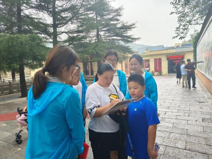 在参观完纪念馆以后,队员们沿着道路走到了红旗渠分水闸,队员们随机让游客们填写调查问卷,多数游客表示希望通过参观红旗渠能更好地了解当地的文化和历史背景,感受红旗渠精神,也让队员们深刻认识到这一景区对后代人民的影响之深。