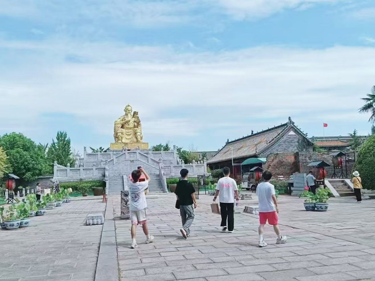 8月28日,成员们参观了山陕会馆。山陕会馆是赊店古镇的标志性建筑,也是中国现存规模最大、保存最为完整的清代商业会馆之一。会馆内的建筑雕刻精美,题材丰富,充分展现了中国古代工匠的高超技艺。成员们一边参观一边听导游介绍会馆的历史和文化内涵,对中国古代商业文化和建筑艺术有了更深刻的理解。