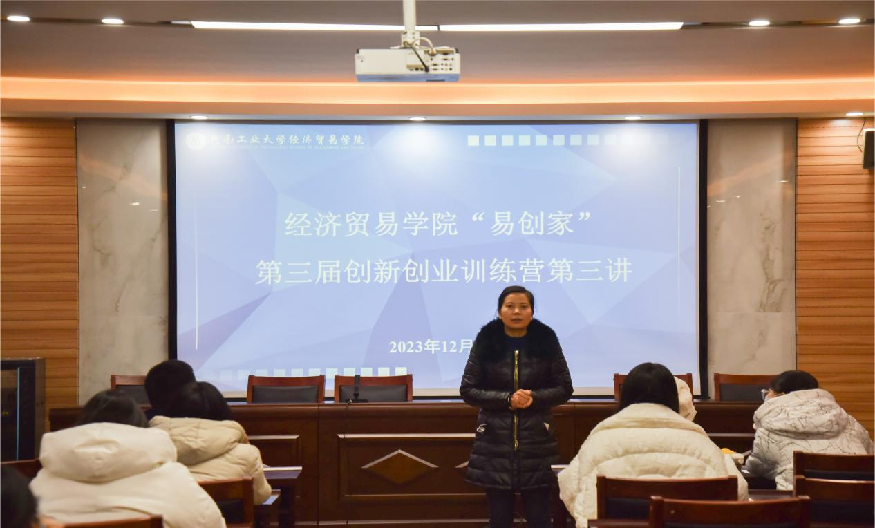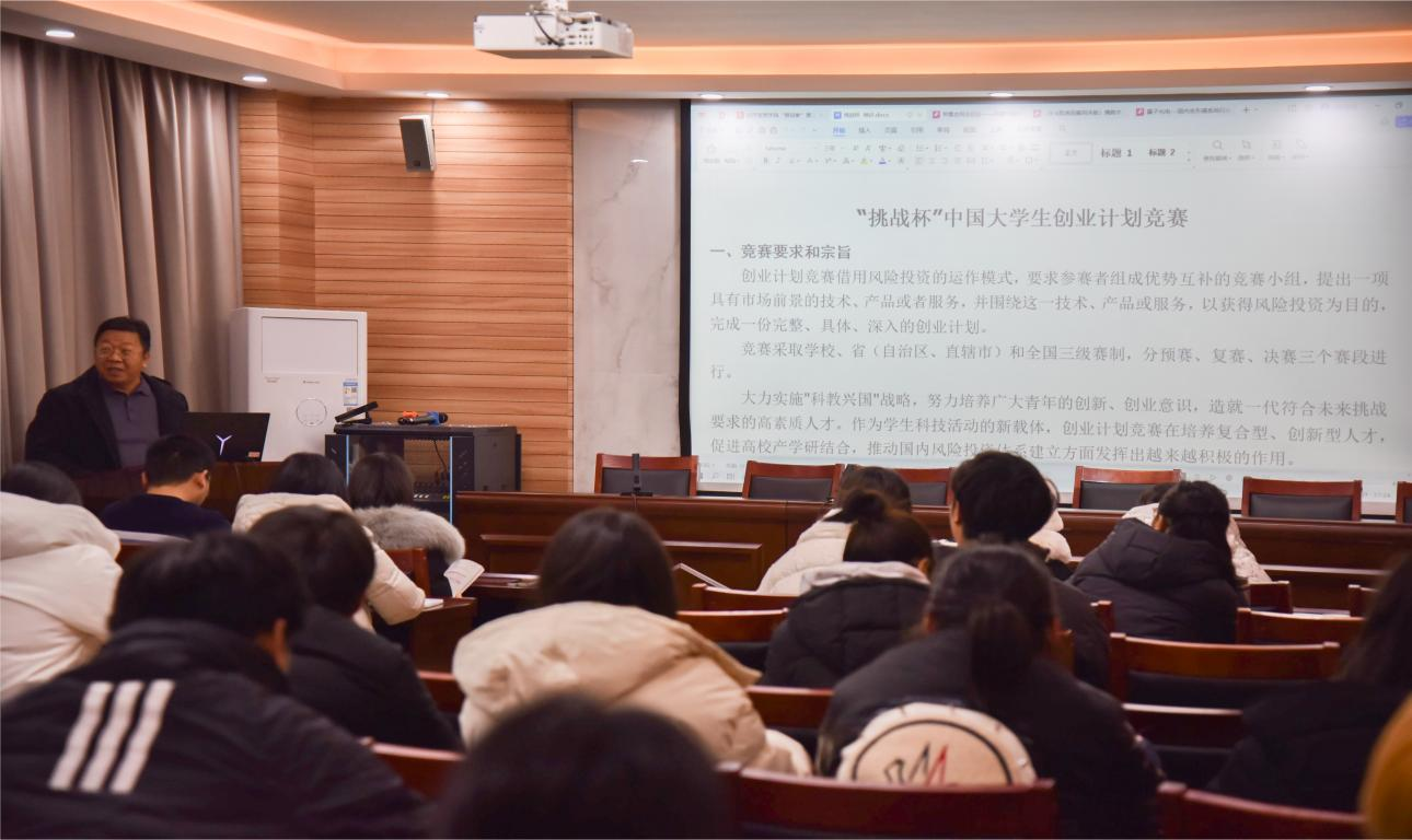 在3605会议室举办“易创家”第三届创新创业训练营第三讲。学院特邀“挑战杯”功勋导师翟书斌主讲,院党委副书记岳鹏珍、辅导员李川川、参赛指导老师和参赛团队成员参加本次讲座。讲座由岳鹏珍主持。