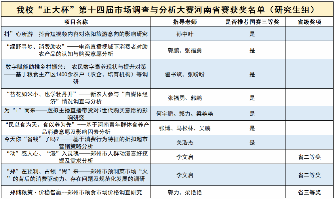 在“正大杯”第十四届市场调研大赛研究生组中共获得国家三等奖7名,省二等奖2名,省三等奖1名的好成绩!