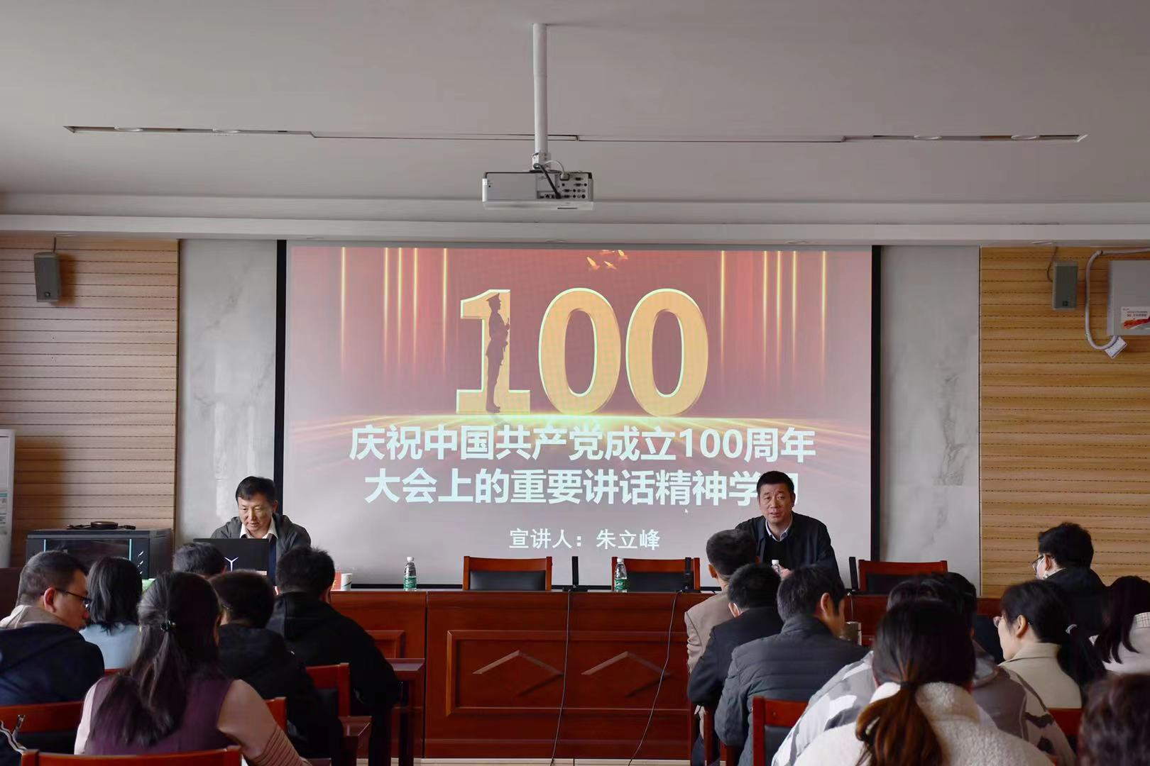 在3号楼3605会议室召开习近平总书记在庆祝中国共产党成立100周年大会上重要讲话精神宣讲报告会,邀请校宣讲团成员、校党委办公室主任朱立峰作此次宣讲报告。学院全体教职工参加报告会,会议由院党委书记李刚主持。
