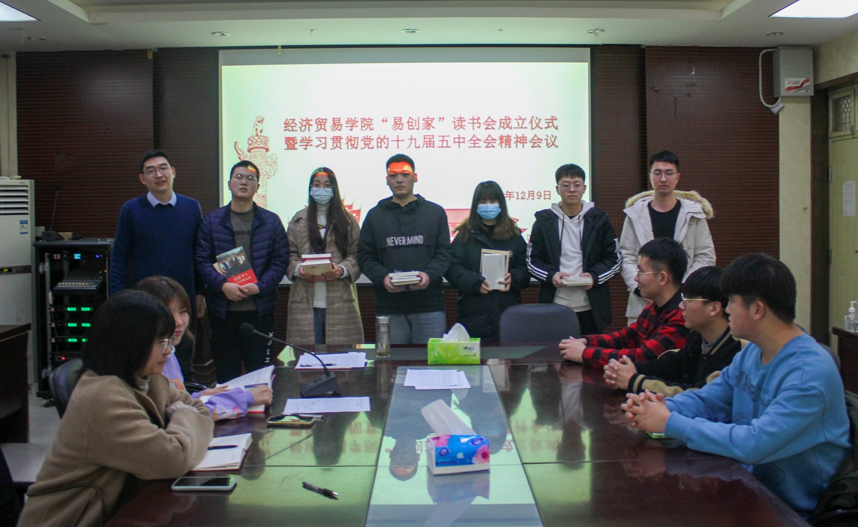 于3501召开“易创家”读书会成立会议暨学习贯彻党的十九届五中全会精神会议。党委副书记王鹏,17、18级辅导员王秋瑾、19级辅导员郑帅及各支部预备党员参加了本次会议。本次会议分为两个部分进行。
