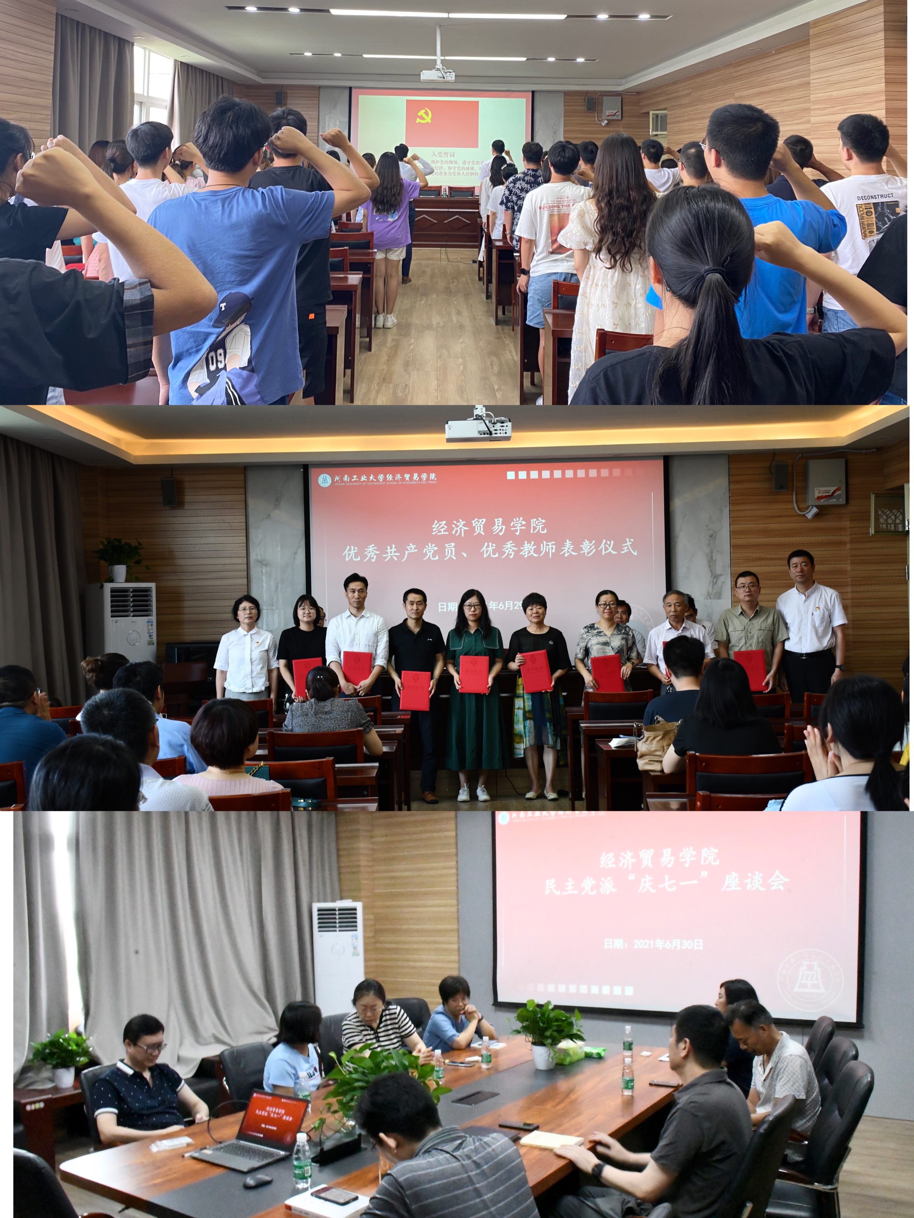 党委在3506举行“党旗在基层一线高高飘扬”主题党日活动暨新党员入党宣誓和党员重温入党誓词仪式。会上,学院为每位新发展党员配发党徽、党章和党员政治生日纪念册,新发展党员面对党旗进行了庄严宣誓,老党员重温誓词。院党委书记李刚向新发展党员提出了明确要求,寄予了殷切期望,希望大家认真学习领会习近平总书记在庆祝中国共产党成立100周年大会的重要讲话精神,继续为民族复兴的中国梦而努力奋斗。