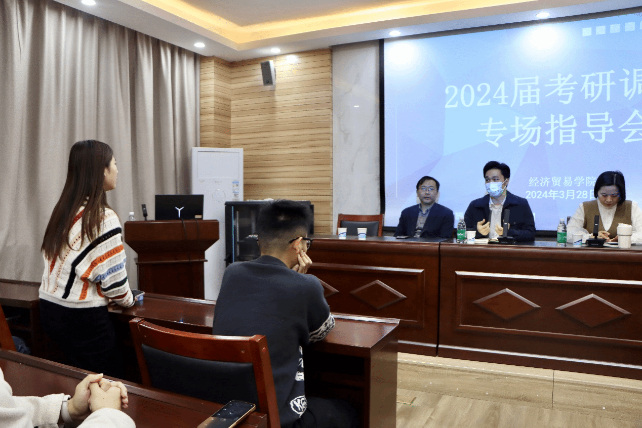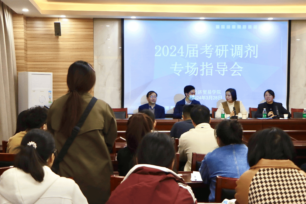 在博识楼3605会议室召开2024届考研复试调剂专场指导会,副院长李文启、系室主任、党支部书记和教师代表郭力、郇新刚、张小蒙出席会议为同学们讲解调剂政策并答疑。指导会由院党委副书记岳鹏珍主持。