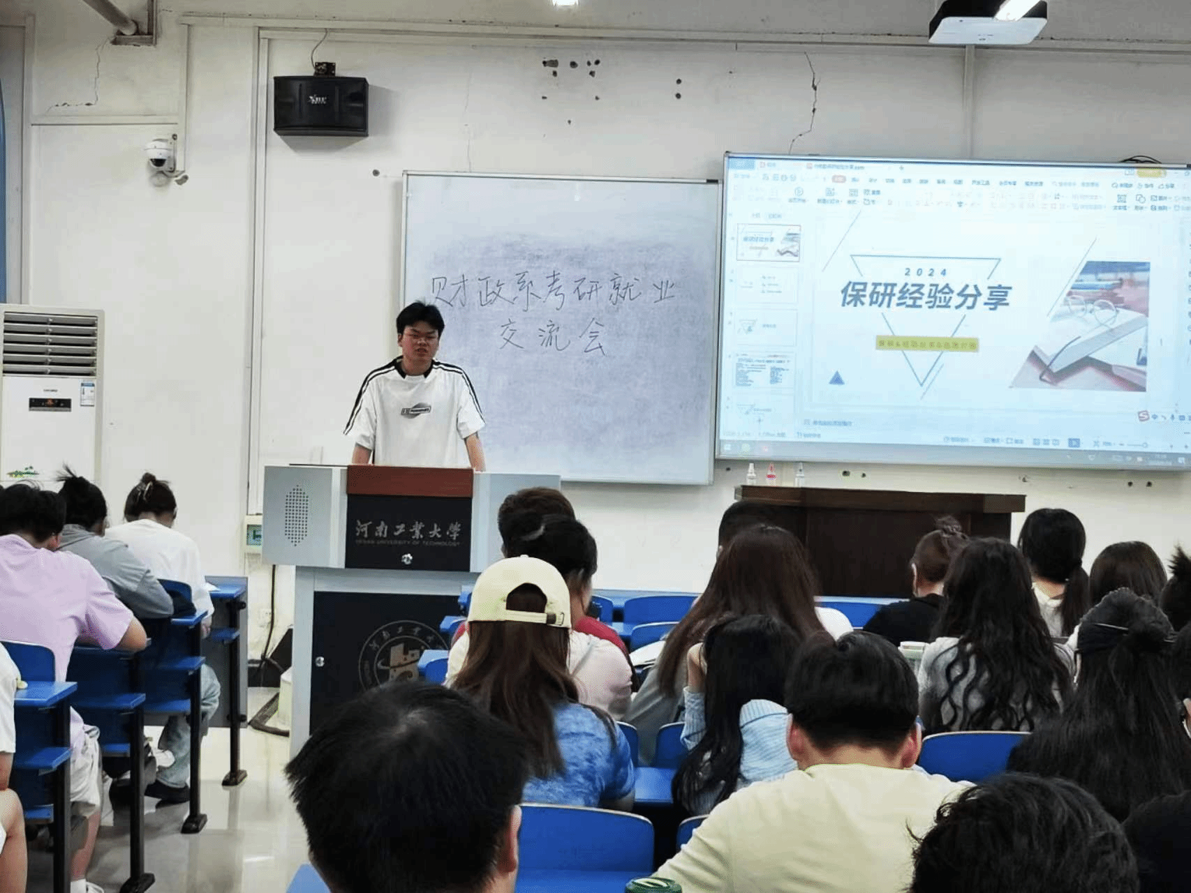 在交流会上,各位学长学姐们结合自己的亲身经历,分别从考研准备、择校策略、复习技巧、面试经验等方面进行了详细介绍。他们不仅分享了成功的经验,还毫不保留地指出了备考过程中可能遇到的困难和挑战,并给出了切实可行的解决方案。同时,学长学姐们就当前考研政策进行了深入分析,为同学们提供了宝贵的参考意见。另外,两位同学结合自身求职经历,分析了当前财政学专业的就业市场形势,并分享了简历制作、面试技巧、职场适应等方面的经验。此外,对于有意向考公的同学,学长学姐们也分享了考公的准备策略、笔试面试技巧等。