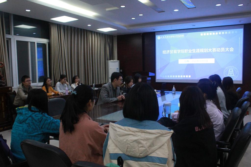 于3501会议室开展职业生涯规划大赛动员会。学院党委副书记王鹏、19级辅导员郑帅、全体参赛成员参加了本次会议。
