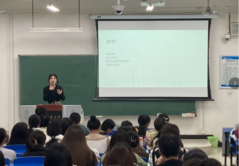 交流会由已成功考取研究生、国家公务员和同时拿到多个用人单位就业录用通知的五位2019级应届毕业生为大家做经验分享。各位毕业生结合自己的考研、考公及择业经历为学弟学妹们分享成功经验和心理历程,建议大家尽早确定人生目标,全力以赴向既定目标冲刺努力,以期成功上岸,实现美好愿望。随后,参会的大三学生与五位优秀毕业生对有关考研、考公等问题进行交流,现场气氛非常热烈。