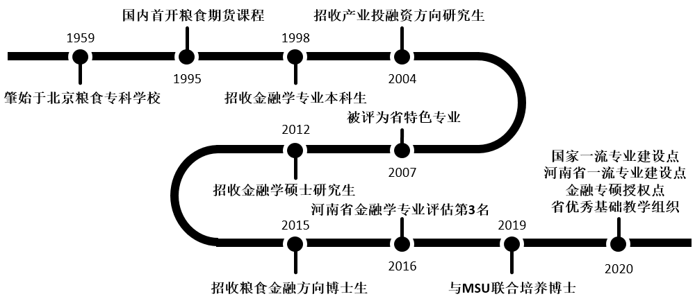 历史沿革:本专业肇始于1959年北京粮食专科学校的粮食经济专业,1998年招收本科生。2004年招收产业经济学产业投融资方向硕士研究生。2007年获评河南省特色专业。2020年与MSU联合培养博士研究生,并获批河南省高等学校优秀基层教学组织。2021年获批国家级一流本科专业建设点、河南省黄大年式教学团队、河南省虚拟教研室建设点。