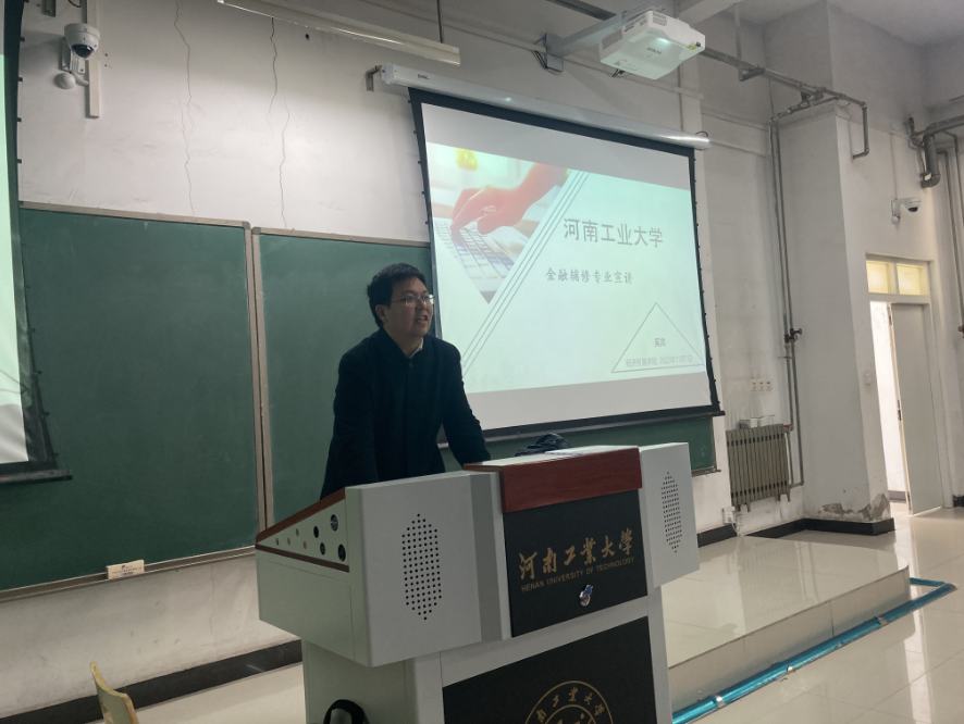 在3101教室举办了金融学辅修招生宣讲会。金融系主任奚宾老师和专业骨干李绍玲老师进行了招生宣讲和互动交流。