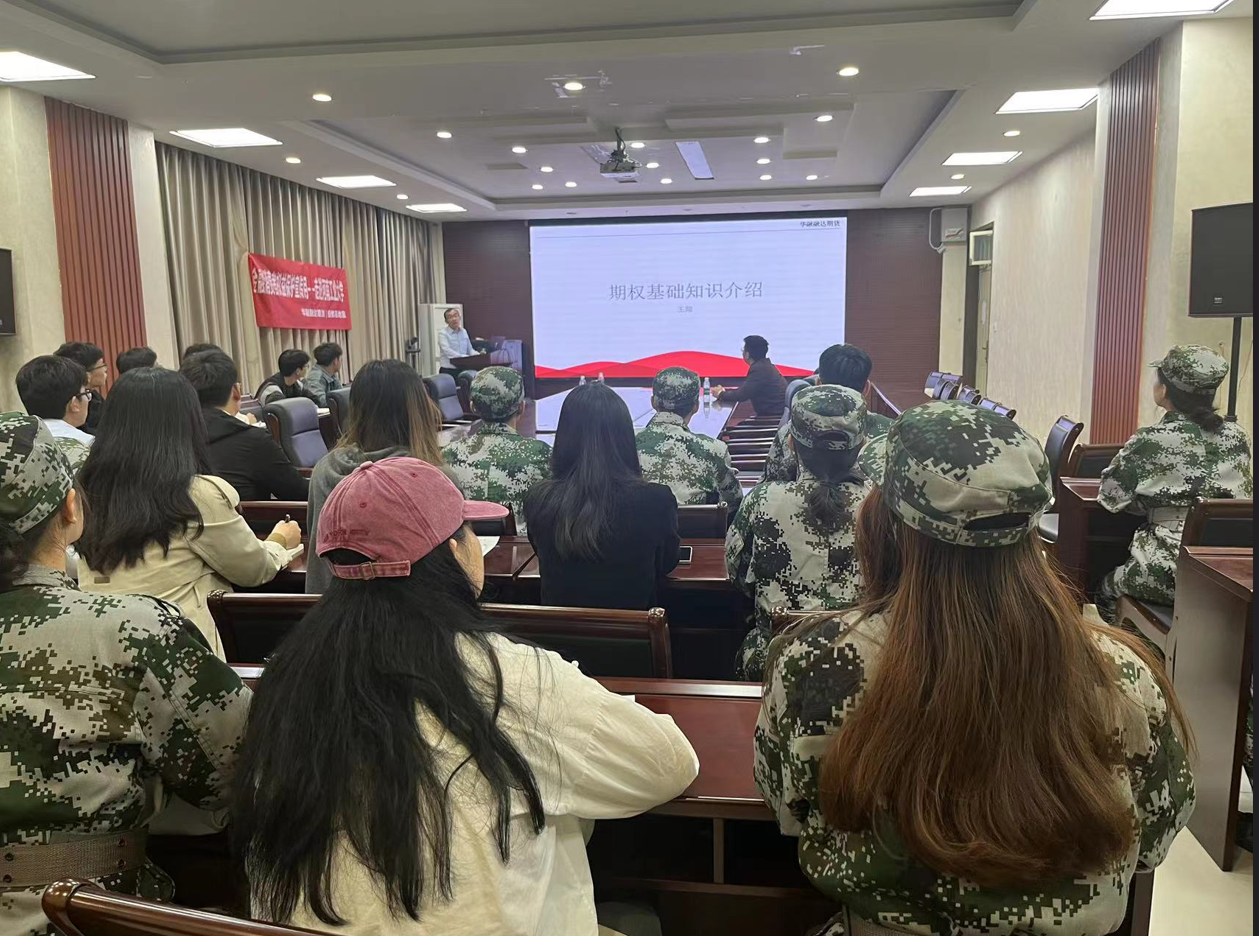 11月7日,华融融达期货有限公司期货期权首席顾问王翔博士给同学们分享了期权交易基础知识,并结合自己的经历提出了同学们在校期间学习和考证方面的建议。他认为大学期间必须要学好专业课,并利用业余时间考取行业准入证书和一些“含金量”高的技能证书,若希望有更高的平台,也要集中精力冲击知名高校的硕士研究生。