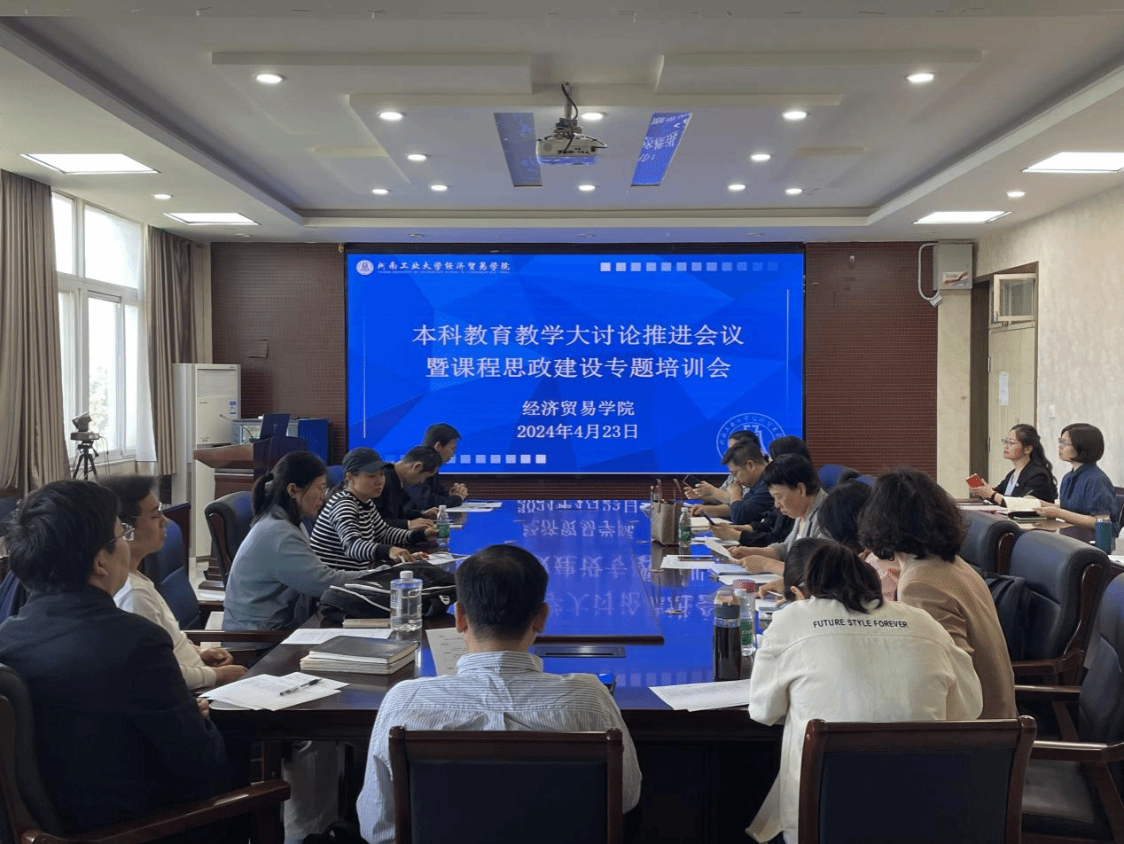 在博识楼3501会议室召开本科教育教学大讨论推进会议暨课程思政建设专题培训会,副院长朱坤林、各系室主任、学院督导委员和各系骨干教师参加会议。会议由朱坤林主持。